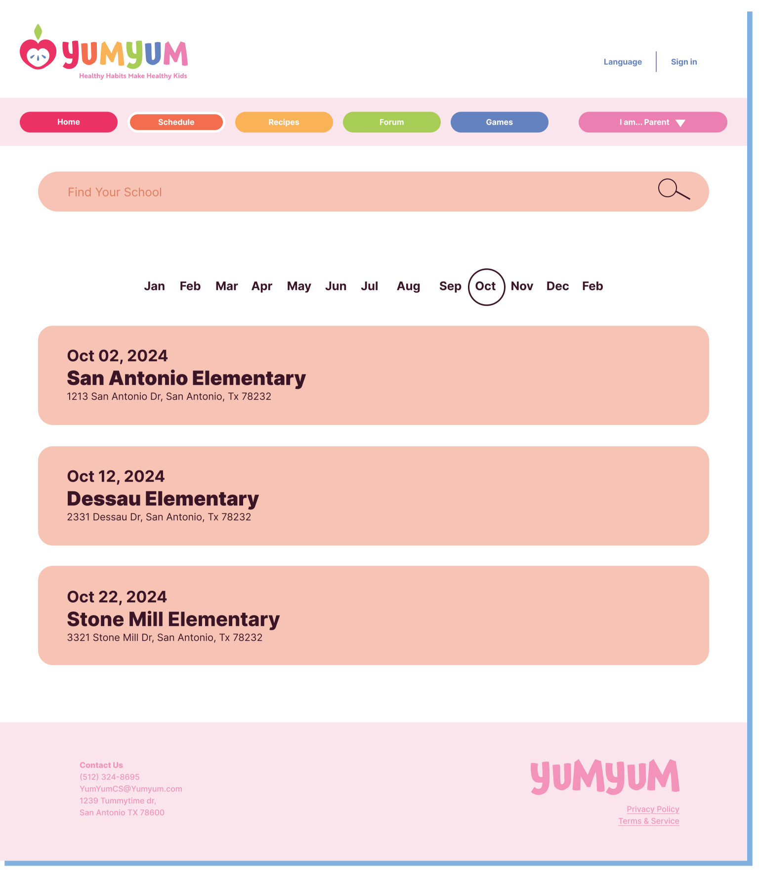 High Fidelity is the most refined version of the website. It has been curated to a fun and informative website to assist parents in curving bad eating habits in children. Optimized for both mobile and computer the website offers calendar for future events, healthy and enjoyable recipes, forum for parents and even games for the kids to enjoy